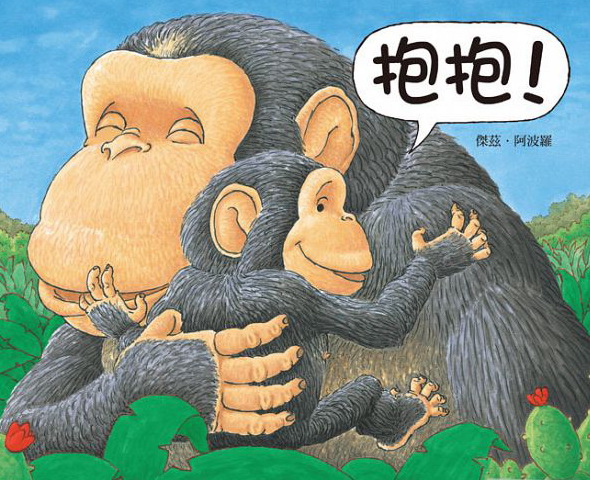 繪本裡頭的文字從頭到尾就只有 "抱抱"兩個字,
