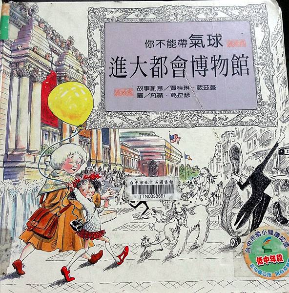 奶奶帶著小孫女參觀博物館,但是小女孩手上的氣球不能帶進博物館,